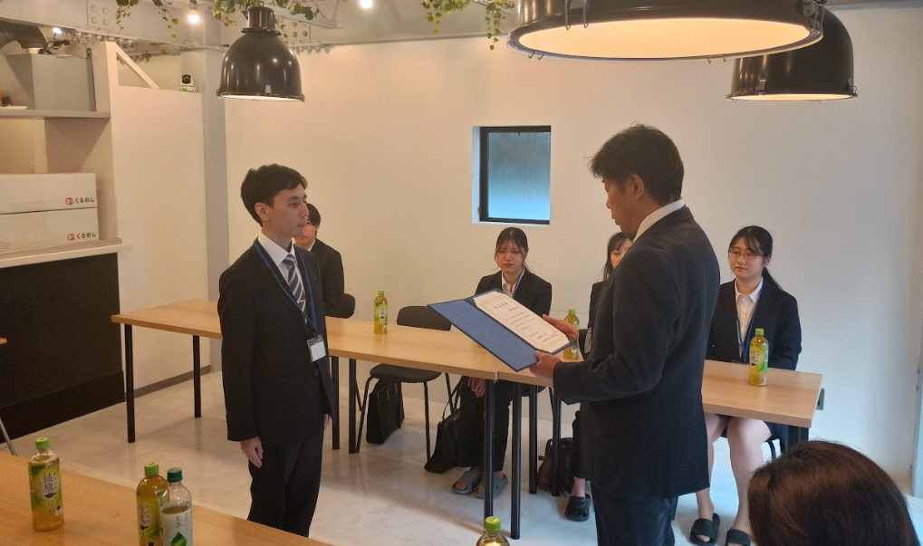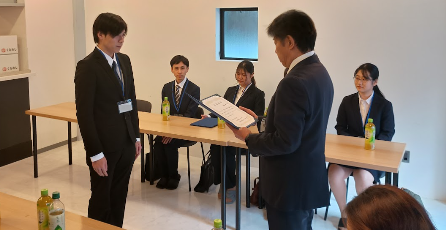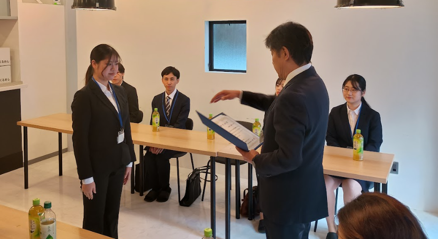 人事部長から内定者に内定証書を渡していただきました。